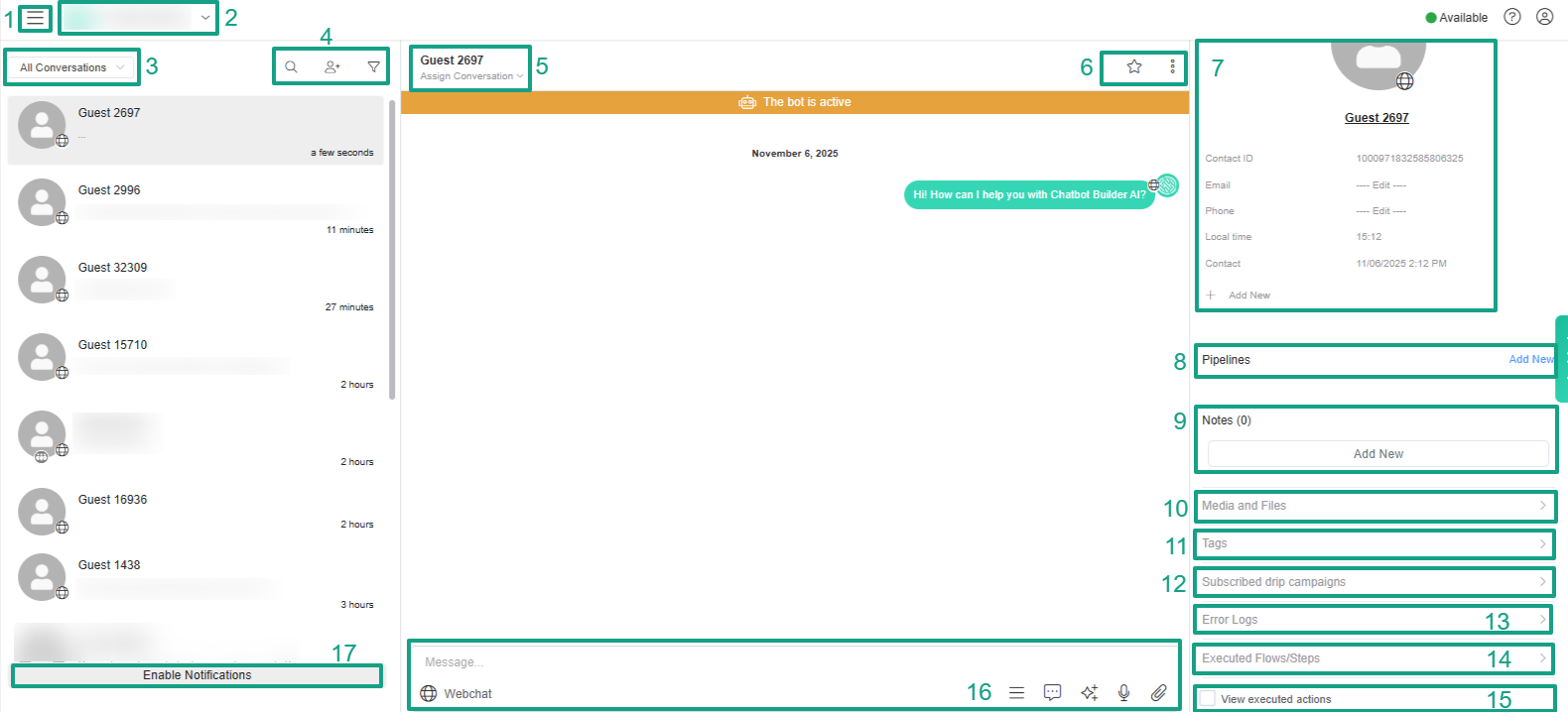 Now that you're familiar with all 17 sections of the inbox, you have the tools to effectively manage conversations, monitor user interactions, and leverage both automated and manual features to provide exceptional customer service.