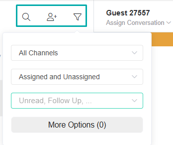 4. In the fourth section you can search for a word or username, add a contact, or filter conversations by channel, assignments, status, or More options like Conditions.