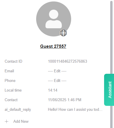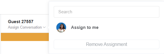 5. In the fifth section you can see the user's name and assign an administrator or remove the assignment from the conversation manually. Likewise, when the conversation is automatically assigned to an administrator, it will be displayed here.