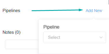 8. In the eighth section you can view the information related to a particular user's Pipelines and quickly see what stage they're in. You can also manually add information to this feature from 'Add New'. This section will appear in your inbox once you have added opportunity boards.