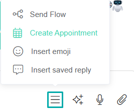 - Hamburger menu: Allows you to select Send Flows, Create a schedule, Insert an emoji, Insert a saved reply.