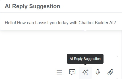 - AI Reply Suggestion: Allows you to share with the user a response suggested by artificial intelligence related to the user's question. This suggestion is fed by the business information provided in the default agent.